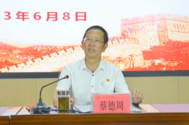 蔡德周院长要求,我们要不断增强“四个意识”,坚定“四个自信”,做到“两个维护”,充分认识到民族团结是我国各族人民的生命线,各民族共同团结进步、共同繁荣发展是中华民族的生命所在、力量所在、希望所在;我们要不断推深全校师生对伟大祖国、中华民族、中华文化、中国共产党、中国特色社会主义的高度认同,努力推进民族团结进步示范校的建设;我们要时刻牢记初心使命,全面贯彻落实立德树人根本任务,加强师德师风、学风和家风建设,奋发有为,为建成省域“双高”高等职业学校,推进学校高质量发展,实现中华民族伟大复兴努力奋斗。