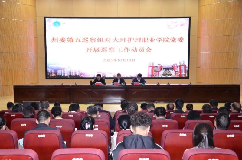 根据州委统一部署,2023年10月10日,州委第五巡察组巡察bat365中文官方网站党委工作动员会召开。会前,巡察组与bat365中文官方网站党委书记廖惠群见面沟通,传达了中央和省州党委关于巡视巡察工作的新部署新要求,通报了巡察任务、方式方法,提出明确工作要求。会上,州委第五巡察组副组长李四铭通报了干扰巡视巡察典型案例,并作了动员讲话,州委巡察办副主任罗敏智对做好巡察工作提出要求,廖惠群主持会议并作表态讲话。