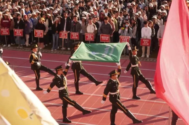 预备役连的学子迈着矫健的步伐,高举鲜艳的五星红旗、五环旗、校旗阔步前行,犹如迎风破浪的航船,勇往直前!