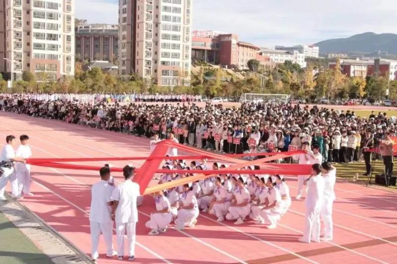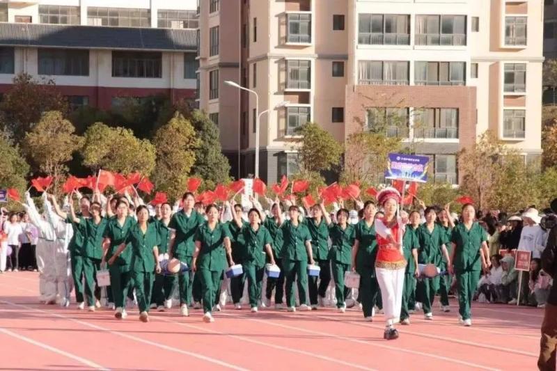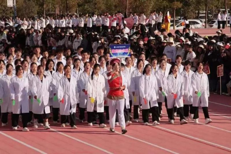 护理方队、医疗救护方队、希望方队和逐梦方队依次展现了护理类专业的特色,诠释了技能点亮人生的丰富内涵。