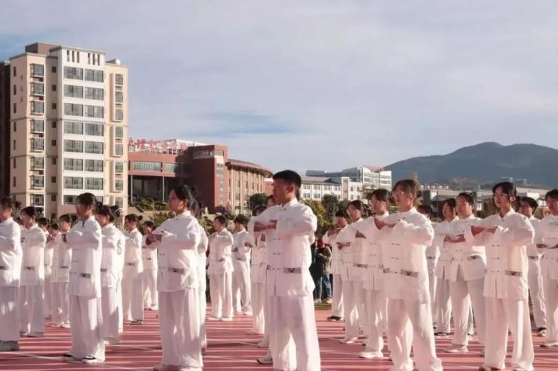 他们英姿飒爽,八段锦表演在一收一放中,展现出中国传统文化魅力,传递给全校师生加强锻炼,养成健康体魄的信息。