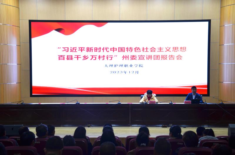12月13日,大理州委宣讲团成员崔恩铭老师,深入bat365中文官方网站开展“习近平新时代中国特色社会主义思想百县千乡万村行”宣讲报告会。学校党委书记廖惠群主持宣讲报告会。