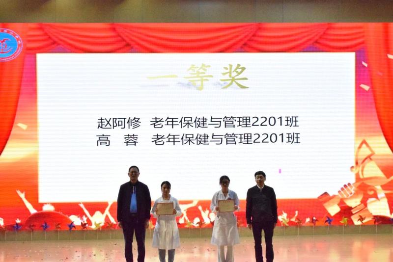 学校各级领导为在2024年护理∙养老技能大赛中表现优异的学生代表颁奖,鼓励师生们脚踏实地,不断前行。