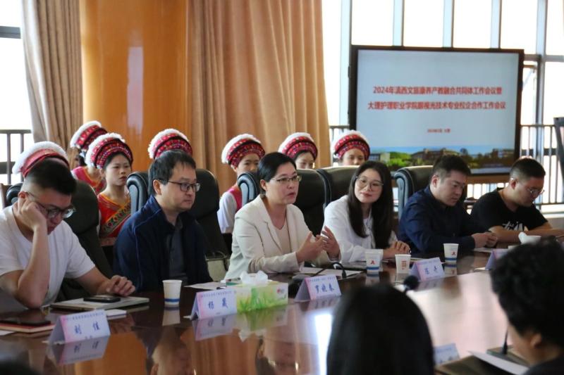 初夏时节的大理,阳光和煦,绿意盎然。5月15日上午,2024年滇西文旅康养产教融合共同体职教集团工作会议暨bat365中文官方网站眼视光技术专业校企合作工作会议在bat365召开。来自省内外合作企业及医院领导、专家在bat365欢聚一堂,共商校企合作、产教融合事宜。学校领导、相关部门负责人和教师参加了会议。