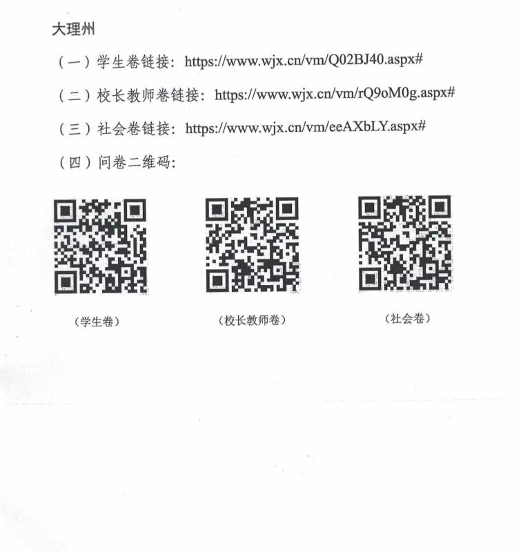 全校师生和学生家长行动起来,扫描对应二维码,积极认真完成满意度调查