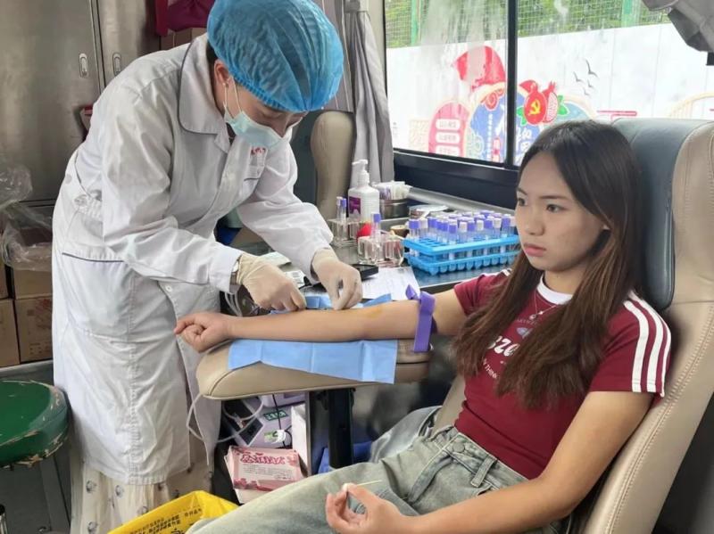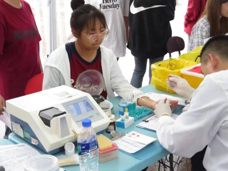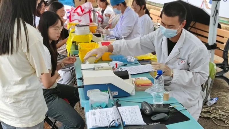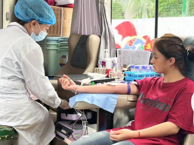 活动当天,志愿者们早早地来到献血点,争先献血。师生们一股股鲜红的热血传承大爱。师生以“小我”凝聚出一股“大我”的能量,奉献出一份份平凡的力量。