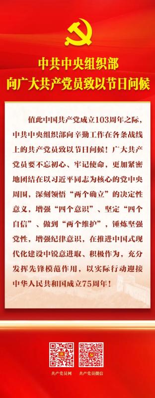 中共中央组织部向广大共产党员致以节日问候