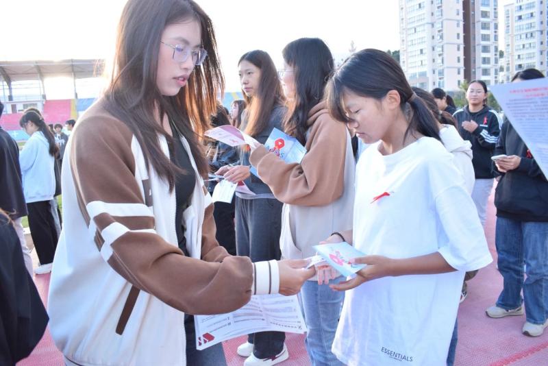 活动伊始,工作人员向参与同学发放青春健康知识宣传手册、红丝带等活动物品,指导老师带领师生们共同学习健康知识,引导同学们积极参与户外活动,强身健体,走出宿舍,走出教室,走向操场,拥抱自然。同学们在进行热身运动后,个个热情饱满,步伐矫健,欢声笑语,携手共进,充满朝气与活力,用跑步运动的形式在操场上画出属于自己的青春健康最美弧线。