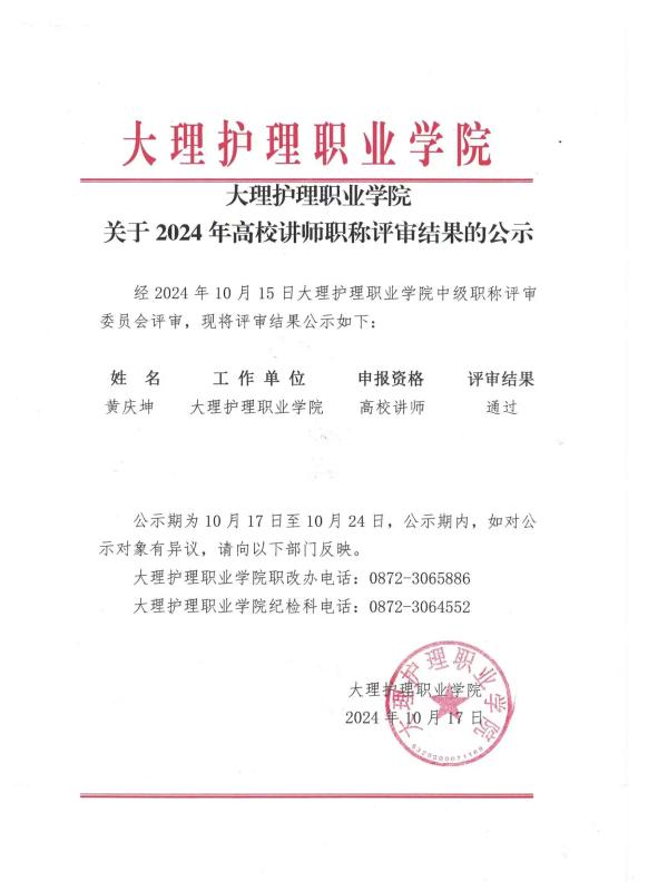 bat365中文官方网站关于2024年高校讲师职称评审结果的公示