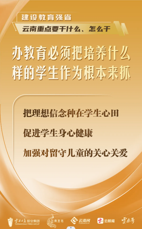 把理想信念种在学生心田。坚持不懈用习近平新时代中国特色社会主义思想铸魂育人,抓实新时代立德树人工程。一体化建设大中小学思政课,用好云南红色资源,讲好新时代改革发展故事,强化铸牢中华民族共同体意识教育,擦亮“张桂梅思政大讲堂”这一品牌。