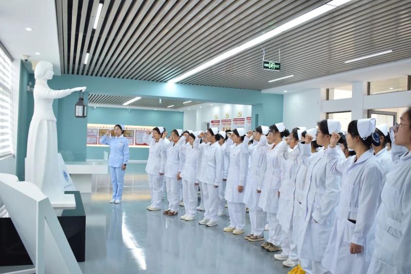 宣誓仪式伊始,全体师生身着白衣,面容庄重,目光坚定,高举右手,在领誓人的带领下,庄严宣誓,字字铿锵有力,句句饱含深情,立志成为一名吃苦耐劳、技术精湛、热情服务、全面发展的医护人员。仪式结束后,带队老师带领师生们参观了护理系文化长廊,了解了护理系的专业特点、师生风采、发展历程等,增强了学校归属感、集体荣誉感和职业认同感。