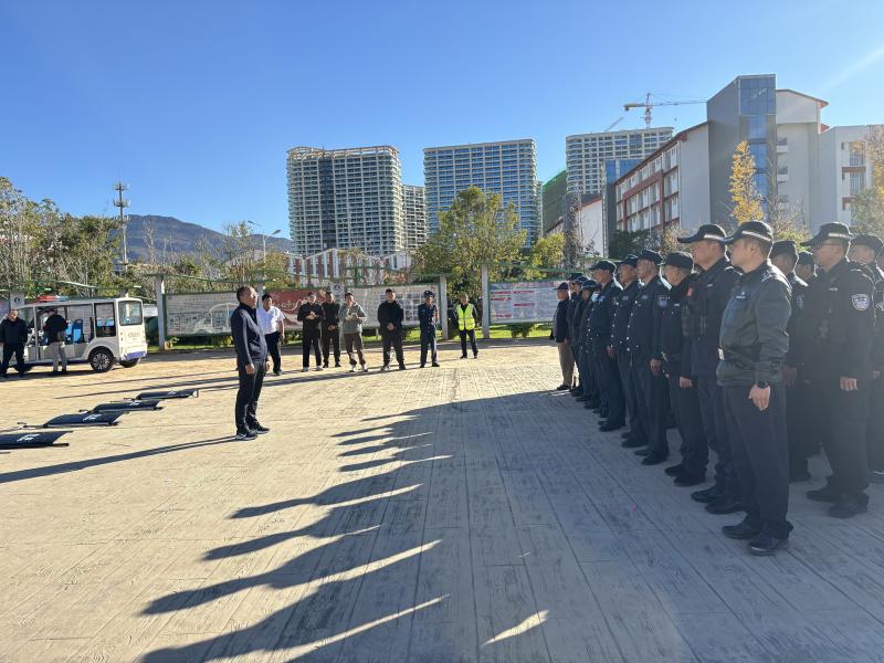 培训现场,海东新区派出所所长作动员讲话,他分析了目前校园面临的反恐形式,强调全体安保人员要以此次反恐防暴培训为契机,警钟长鸣,要不断提升突发事件的应急处置能力。大理市公安局巡特警大队副队长为师生详细讲解了基本的反恐防暴技能和应对方法,对安保人员进行了防暴盾牌、钢叉、应急棍等警械装备使用方法的培训,增强了安保人员、师生对反恐防暴安防技巧的运用能力。