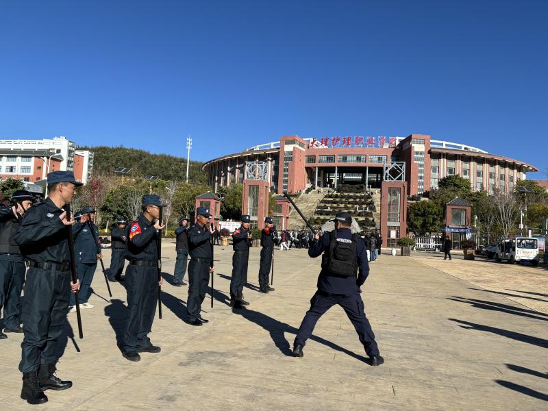 12月3日上午,大理市公安局巡特警大队、海东新区派出所联合组织海东片区滇西应用技术大学、技师学院、北大金秋、北附育英等学校安保代表在bat365中文官方网站开展校园反恐防暴培训暨反恐防暴演练活动,学校领导、师生、保安共计200余人参加培训。