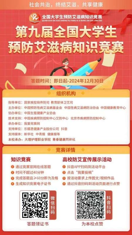 组织学生参加2024年第九届全国大学生预防艾滋病知识竞赛