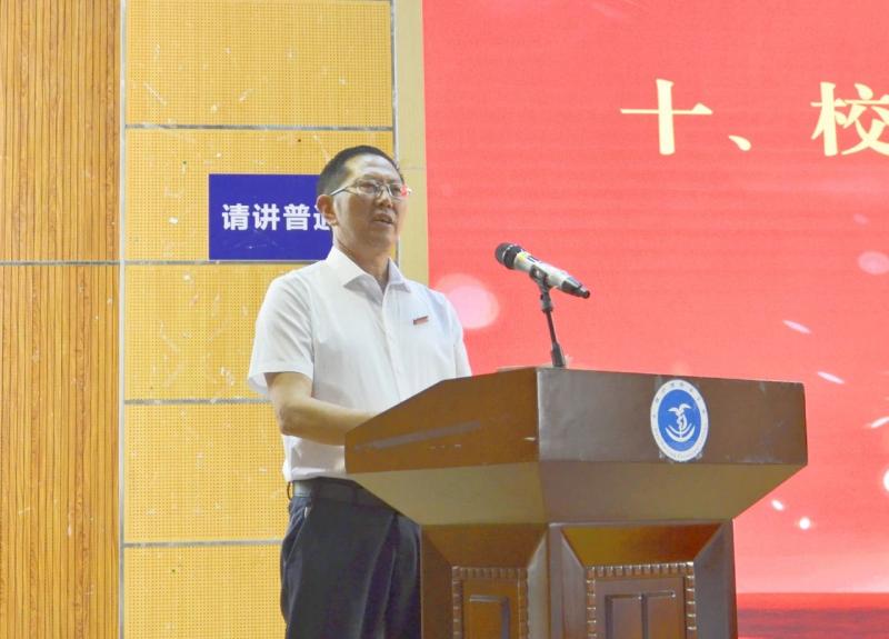 蔡德周校长向全体毕业生提出三点要求,一要涵养“家国情”,筑牢青春之魂;二是常怀“救苦心”,肩负青春之责;三是砥砺“奋斗志”,绽放青春之花。