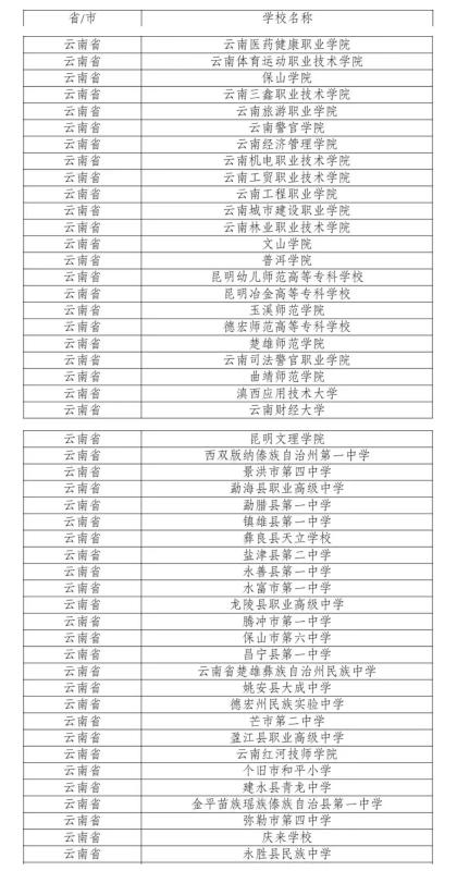 其中,云南105所学校入选