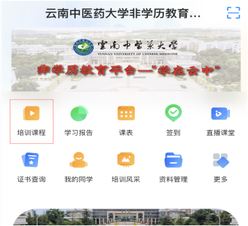 请参培学员登录云南中医药大学非学历教育平台——“学在云中”参与培训。
