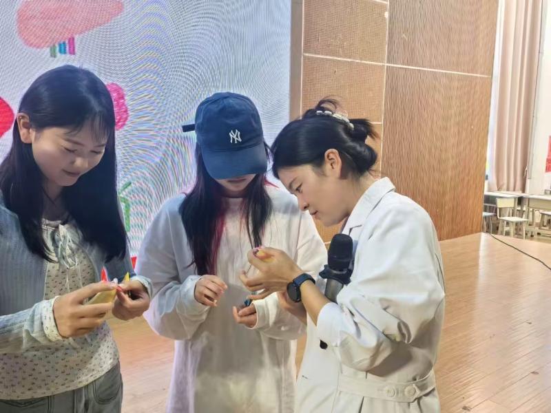 本次讲座按照《科学避孕主题活动指南》进行,内容涵盖了性教育、避孕知识、生殖健康等多个方面。讲座现场布置了多幅海报,发放了宣传单,为同学们提供了丰富的学习资料。在避孕知识普及环节,袁老师详细介绍了各种避孕方法,包括避孕套、避孕药等,并强调了避孕套在预防性传播疾病方面的作用。袁老师还现场演示了安全套的正确使用方法,加深了学生对避孕知识的理解。同学们还通过“勇敢一问”小程序参与了避孕知情选择、常用避孕方法百科以及趣味测试、匿名问答等互动游戏。