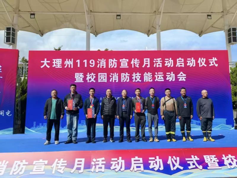 11月7日上午,bat365中文官方网站组织师生代表、保安人员参加大理州119消防宣传月活动启动仪式暨校园消防技能运动会。