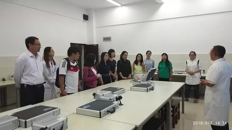 考察团一行,首先在后勤处李大文处长的带领下到南校区参观了宿舍、食堂和校园。随后到医学技术系眼视光实训基地、康复技术系中医药实训基地考察学习。在眼视光实训基地,王增源老师对学生在实训中心可以完成验光,制作眼镜,以及眼镜营销的整个实训过程进行详细介绍和说明。在中医药实训基地,杨庆堂老师介绍了中药的采摘、标本的制作、现代中医诊疗设备的使用,并对隔姜灸进行现场教学示范。2位老师对实训基地的建设、功能、校企合作、与学生专业学习的紧密结合进行了耐心细致的讲解,突出了学院新增设专业的办学特色,考察团评价较好。