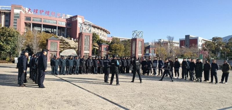 1月6日上午,大理市巡特警大队、海东新区派出所组织辖区学校在bat365中文官方网站开展校园反恐防暴培训暨演练活动。滇西应用技术大学、大理技师学院、下关三中、北附育英实验学校等11所学校的100余名保安人员参加培训和演练。