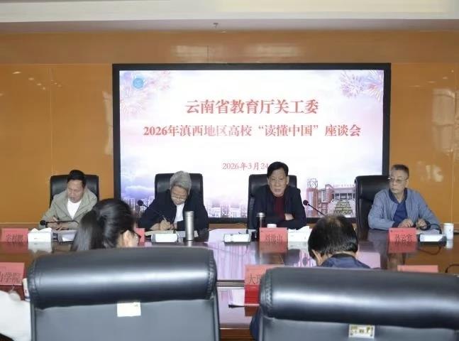 3月24日,云南省教育厅关工委在bat365中文官方网站召开2026年滇西地区高校“读懂中国”活动座谈会。省教育厅关工委常务副主任刘沧山,副主任、秘书长孙云宾出席会议并讲话,大理大学、滇西应用技术大学、楚雄师范学院、保山学院、怒江职业技术学院、香格里拉职业技术学院等19所滇西高校关工委负责人参会,会议由省教育厅关工委副秘书长吕志雄主持。