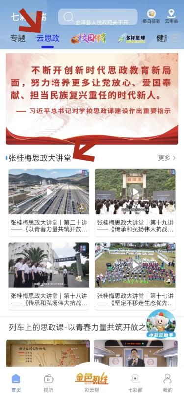 下载“七彩云端”,在首页进入《云思政》专栏,观看“张桂梅思政大讲堂”精彩内容。