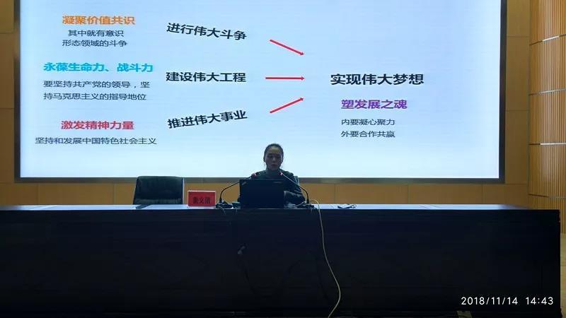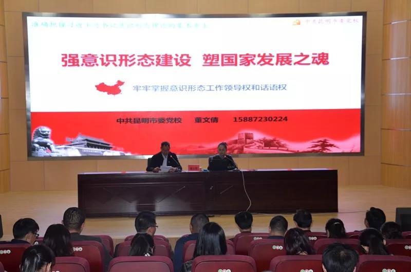 为进一步推进我院“万名党员进党校”活动深入开展,不断提高广大党员、中层干部和入党积极分子的政治素质和工作能力,11月14日,学院党委举办了bat365中文官方网站“万名党员进党校”暨中层干部培训,邀请中共昆明市委党校硕士研究生、讲师、云南省道德宣讲员董文倩老师为广大党员、中层干部和入党积极分子作题为《强意识形态建设、塑国家发展之魂》专题报告。