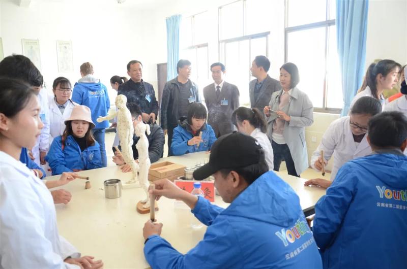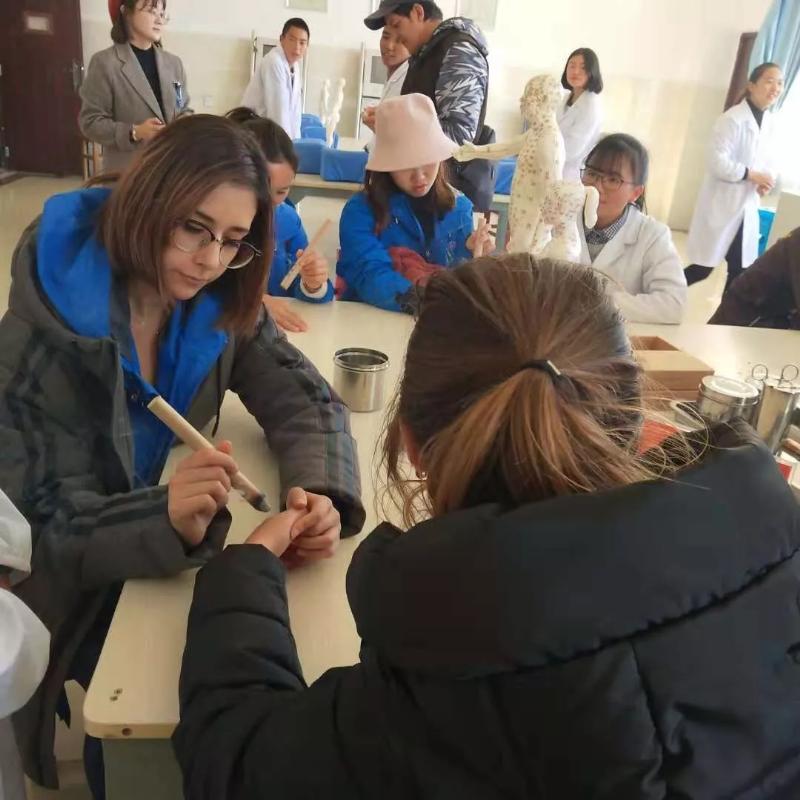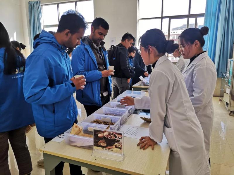 在体验过程中,留学生们在学校志远楼4楼进行了中医药标本、中药饮片的参观与鉴别,体验了中华民族中医学的博大精深,并且品尝了中医专业同学们冲泡的美颜茶、明目茶、减肥茶等多种中药饮品。期间,通过老师及志愿者的耐心解说,留学生们对中医学有了进一步的认识。在此次活动中,留学生们还体验了环保手工,让留学生们了解了扎染的历史、发展、制作原料、染料和制作方法,并一起制作了扎染衣服,在导师与同学的悉心讲解下,留学生对大理白族特色扎染又有了深刻的认识。
