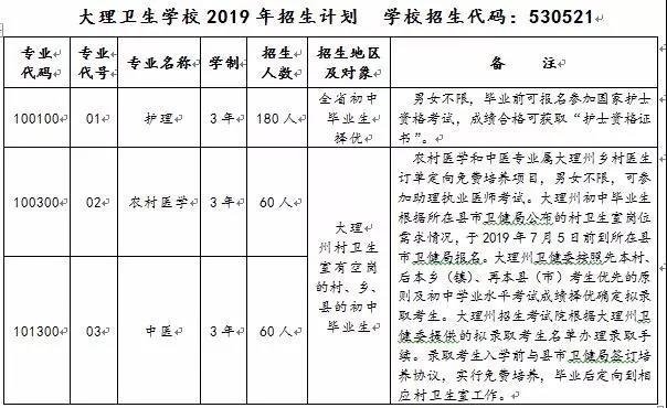 云南省大理卫生学校属公办国家级重点中等职业学校,成立于1953年,已有66年办学历史,是“国家现代服务业和制造业技能型紧缺人才护理专业培训基地”、“国家级护理实作实训基地”和“国家级中医药基础理论示范基地”,也是国家教育部和中医药管理局批准保留中医专业招生的中等专业学校。学校教育教学质量高,学生连年在全国、全省中职学生技能大赛获奖。学校设立了职业技能培训中心、职业技能鉴定所,设立了三校生高考、成人高考报名确认点,为学生取得国家职业证书、升学提高学历创造了良好条件,毕业生就业率高,就业遍布云南省及北京、上海、广州、深圳、厦门、福州、南宁等发达地区。