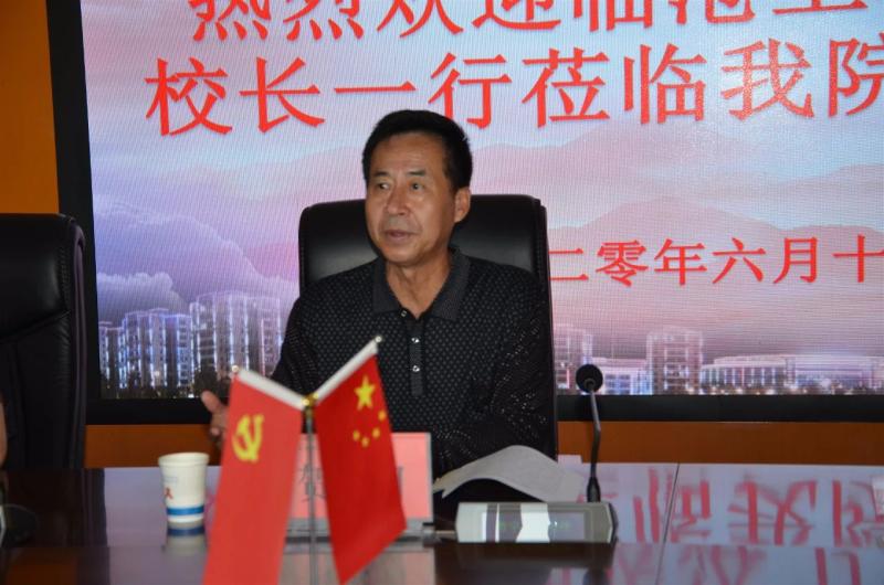 院党委书记王荣富首先代表学院对贺金明校长一行到校指导和交流工作表示欢迎和感谢。王荣富书记向贺金明校长一行简要介绍了学院发展、办学治校基本情况,并重点围绕学院的办学发展理念、专业设置要与市场对接、新开专业招生规模要从小到大持续推进等三个方面进行了座谈交流。副院长陈跃祥就专业发展、教学改革模式、信息化发展、人才培养合格评估等方面,详细介绍了近年来学院的建设发展情况。相关部门分别围绕学院的教学管理、人才培养合格评估、招生就业、技能鉴定、实训基地建设等方面进行了介绍和交流。