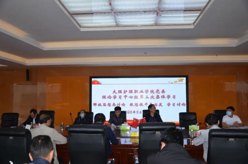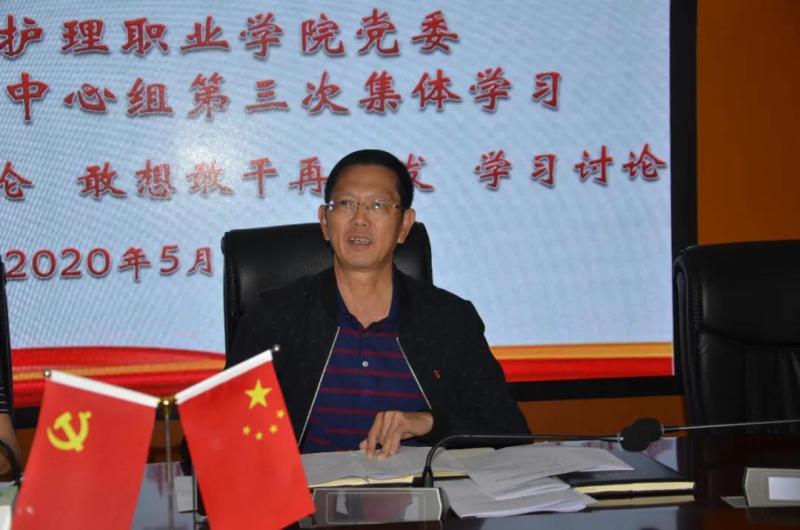 5月27日下午,bat365中文官方网站党委理论学习中心组举行2020年第三次集中学习,组织学习《党委(党组)落实全面从严治党主体责任规定》,动员部署“解放思想再讨论、敢想敢干再出发”活动,引导学院党员干部解放思想、转变作风、敢想敢干、担当作为,统筹推进常态化疫情防控和学院各项工作,奋力推进学院高质量可持续发展。学院党政领导干部及各处(室)、系(部)负责人、党支部书记参加集体学习。会议由院党委书记王荣富主持,并作动员讲话。