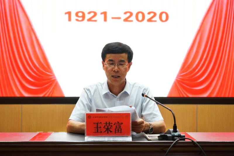 院党委书记王荣富以《守初心 担使命 聚合力 勇争先 为促进学院高质量可持续发展提供坚强保证》为题发表讲话。王荣富首先代表学院党委,向辛勤耕耘、砥砺奋进在教育教学和管理服务岗位上的广大党员致以节日的问候,向勤奋学习、健康成长的青年学生表示良好的祝愿,向受到表彰的先进党组织、优秀共产党员和优秀党务工作者表示热烈的祝贺!