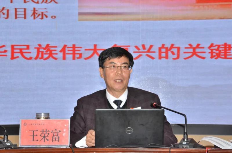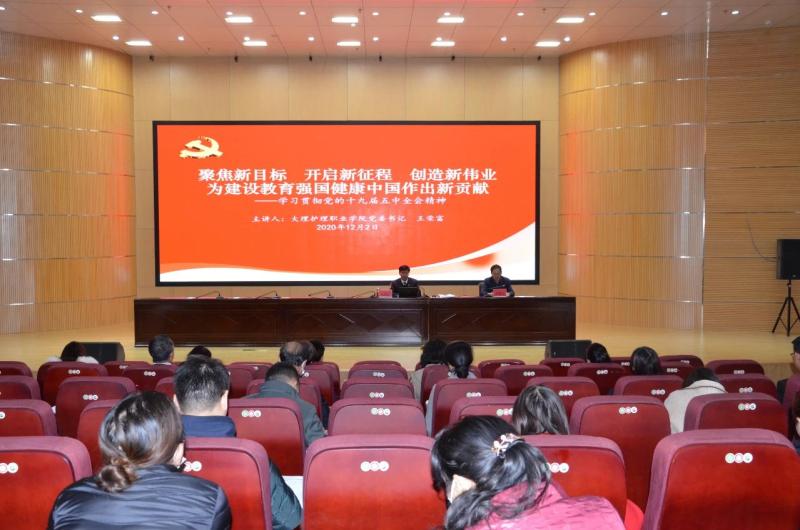 王荣富书记以《聚焦新目标 开启新征程 创造新伟业 为建设教育强国健康中国作出新贡献》为题,从新征程与新目标、新阶段与新战略、新理念与新部署、新变化与新格局、新起点与新大理、新要求与新发展六个方面,为广大师生全面解读了党的十九届五中全会精神。