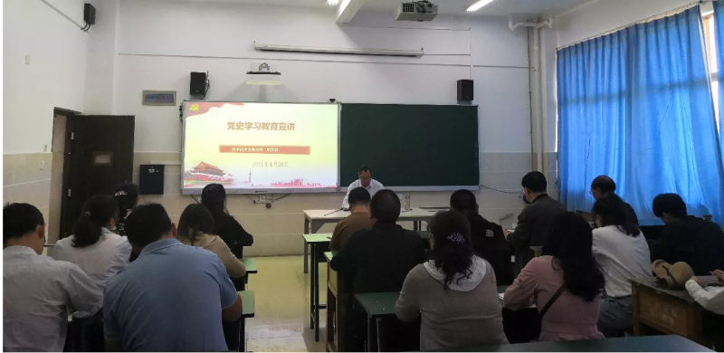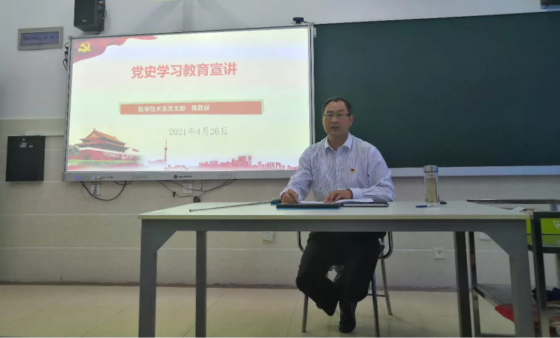 426日上午在医学技术系204多媒体教室,学院党委委员、副院长陈跃祥为医学技术系党支部全体党员及教务科等分管科室教师做了党史学习教育专题宣讲。