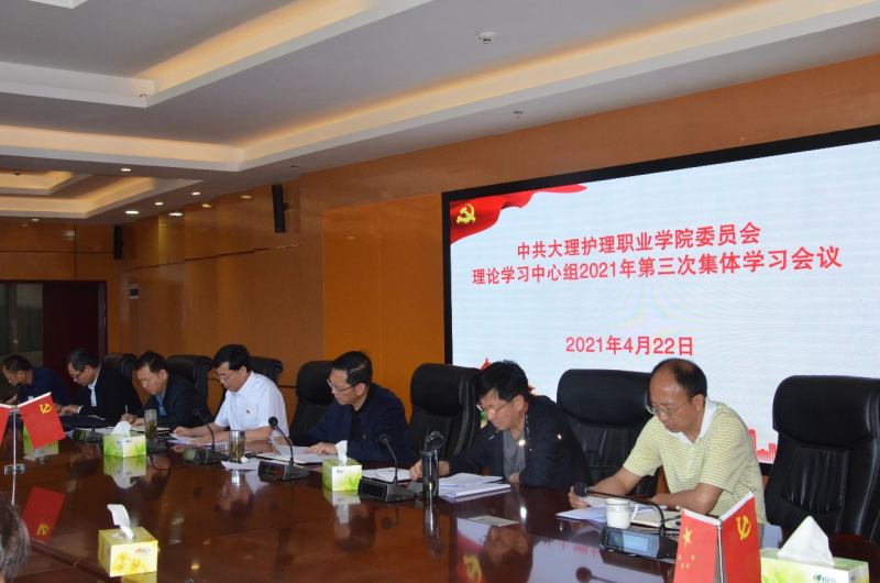 4月22日,学院党委理论学习中心组举行2021年第三次集体学习,学院党政领导班子成员,正处级干部,科级干部,党支部书记参加会议。会议深入学习领会习近平总书记在党史学习教育动员大会上的重要讲话精神、习近平在清华大学考察时强调坚持中国特色世界一流大学建设目标方向为服务国家富强民族复兴人民幸福贡献力量、习近平对职业教育工作作出重要指示强调加快构建现代职业教育体系培养更多高素质技术技能人才能工巧匠大国工匠、省委书记阮成发在全省开展党史学习教育动员大会上的讲话精神,传达2月26日,在大理州党史学习教育动员大会上的讲话、中共bat365中文官方网站委员会关于开展党史学习教育的实施方案。