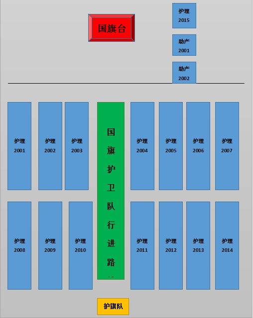 2、参加升旗仪式的师生必须在7:40前到场,并按要求完成列队,做到“横成行,竖成排”,班长站于队伍前面配合工作人员清点人数。请假人员,必须出示请假条,否则视为缺席。