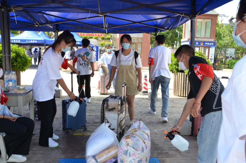 根据国家、省、州和学校关于2022年秋季学期开学疫情防控工作要求,学校在校门口设置入校专用通道,报到的新生全程佩戴口罩,保持1米间隔距离,有序完成体温测量,身份确认,云南健康码、大数据行程卡、24小时核酸阴性检测报告核验,行李消杀、手消毒和更换口罩等环节后进入校园,在志愿者的带领下进行入学资格审核、班级报到后办理入住手续。