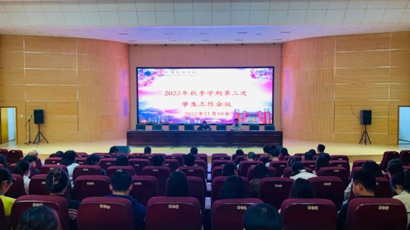 11月10日下午,学校召开2022年秋季学期第三次学生工作会议,会议总结了学校近期学生管理工作的情况,剖析问题,研究对策,安排部署下一步工作。郭向周副院长,学生科相关人员,各系党支部书记、主任、副主任,全校辅导员、班主任参加了会议。会议由学生科负责人杨品老师主持。