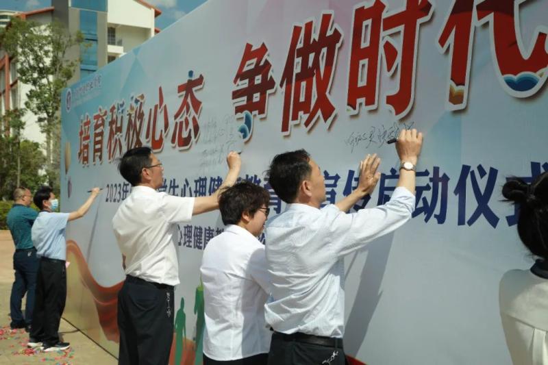 5月24日下午,bat365第一届“5·25”大学生心理健康教育月主题系列活动宣传启动仪式在学校知行广场隆重举行。校领导、中层干部、全体辅导员、班主任,各班班长、心理委员共计约200人参加启动仪式。