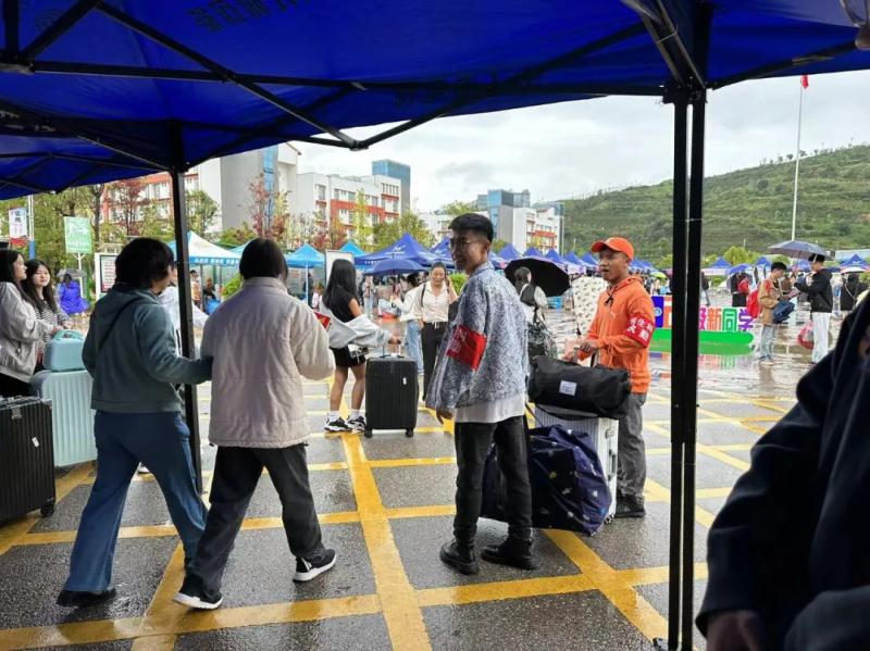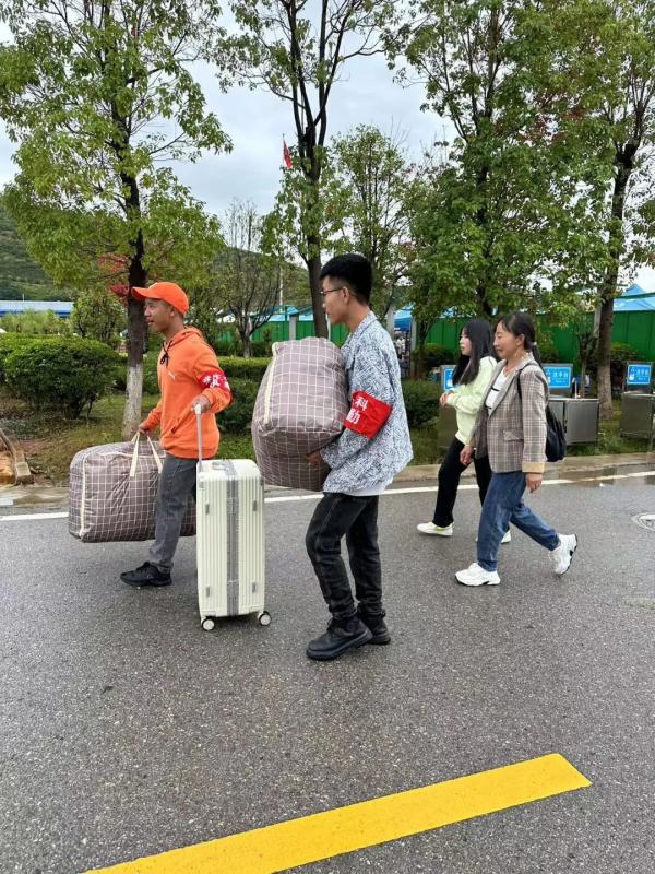 志愿者们在各自的岗位上尽职尽责的为同学们服务,他们的身影活跃在迎新现场的每一处,带领新同学登记,发放饭卡,办理报到流程,搬运行李,领取寝室钥匙;为新生家长提供休息等待的区域,实时为家长解疑答惑,让同学们更加放心……他们以实际行动彰显了责任与担当,同时也为校园增添了一抹别样的色彩。