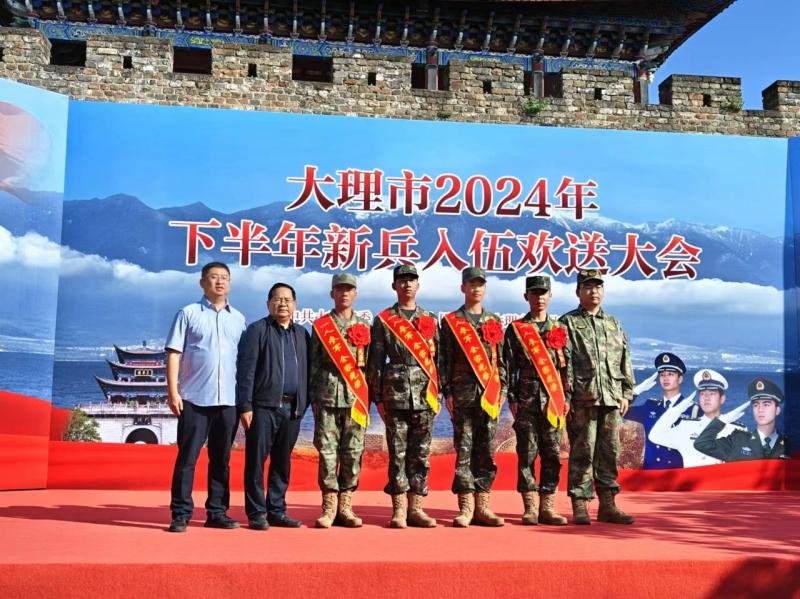 9月14日上午,bat365和艳林等4名应征入伍的学子,参加大理市在大理古城举行的2024年下半年新兵入伍欢送大会,热烈欢送新兵踏上军旅生涯。bat365和艳林、蔡王风、周进清、李嘉晨等4名学子历经初筛、体检、复检、政审及役前训练等重重考验,脱颖而出,和艳林光荣地成为中国人民解放军的一员,蔡王风、周进清、李嘉晨光荣地成为中国人民武装警察部队的一员。校党委委员、副院长郭向周,学生科科长陈勇和武装部专职武装干事张尔虎代表学校到大理古城欢送现场,向即将踏上军旅征程的学子们致以亲切的问候和崇高的敬意,鼓励他们以青春之名,书写报国华章。