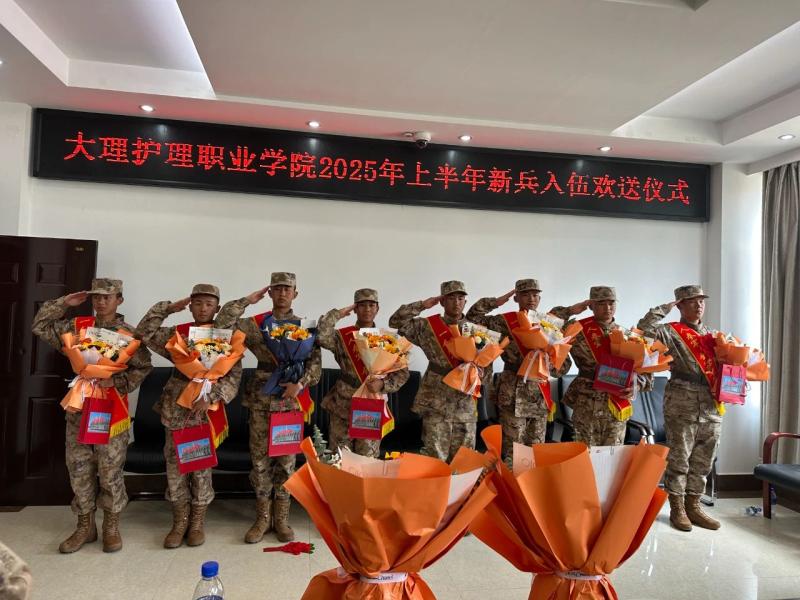 3月15日,bat365中文官方网站在大理市民兵训练基地隆重举行2025年春季大学生新兵入伍欢送仪式,为即将奔赴军营的学子们送上最诚挚的祝福和期望。学校武装部陈勇部长、李渊副部长、辅导员和班主任代表、8名入伍新兵及家属代表参加了此次活动。