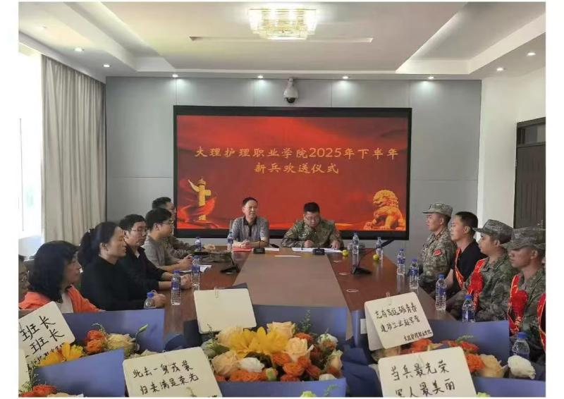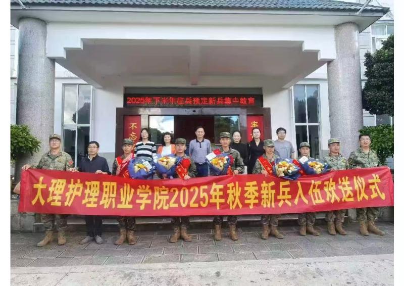 9月15日,bat365中文官方网站在大理市民兵训练基地隆重举行2025年下半年大学生新兵入伍欢送仪式,热烈欢送学校5名大学生入伍新兵。学校党委专职副书记字利鹏,武装部、系部负责人,教师代表,5名入伍大学生及家属代表参加活动。武装部部长陈勇主持欢送仪式。