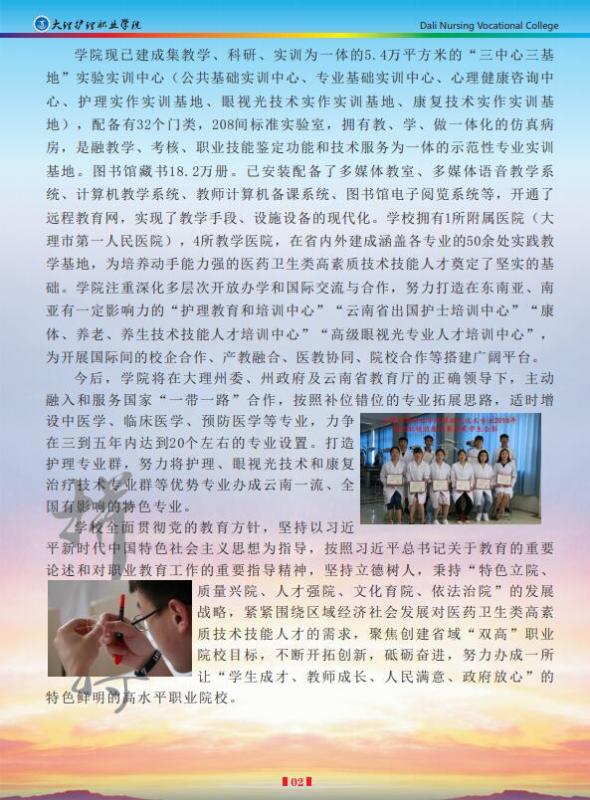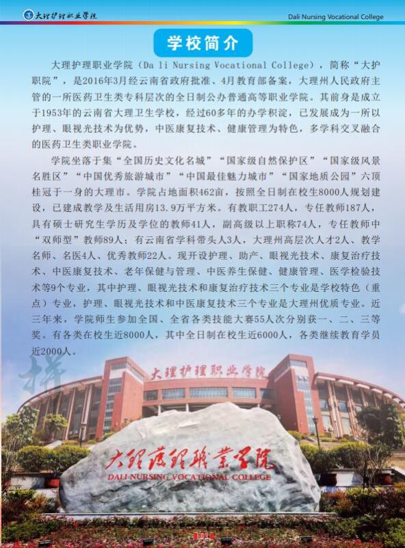 bat365中文官方网站2019年招生简章一、学院简介bat365中文官方网站(Dali Nursing Vocational College),简称“大护职院”,是2016年...