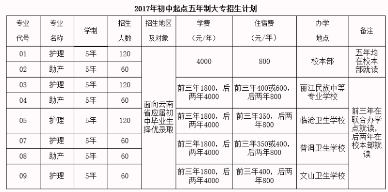 报考bat365中文官方网站五年制大专的考生,必须是具有云南省内各州市户口的应届初中毕业生,参加当地教育主管部门组织的初中毕业生学业水平考试,在《初中毕业生升学志愿表》填报bat365中文官方网站代码、校名,专业代码及名称(以招生报为准),学校根据志愿情况择优录取。