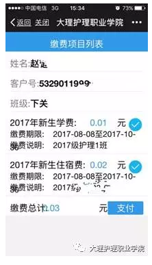 2、 点击右下角“学费缴纳”