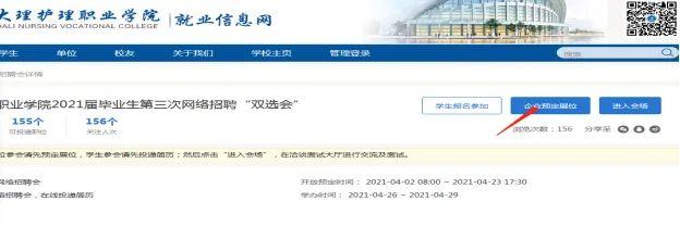 第二步(定展审核):登录网络招聘会平台,点击“企业预定展位”,待审核通过,参加招聘。