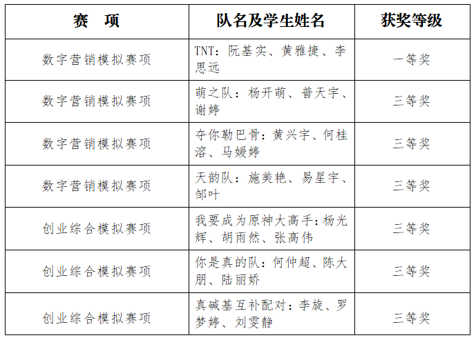 6月23日,第十一届“学创杯”全国大学生创业综合模拟大赛云南省选拔赛在云南国土资源职业学院举行,bat365共收获7个省级奖项,其中,在数字营销模拟赛项中获一等奖1项、三等奖3项,在创业综合模拟赛项中获三等奖3项。这是学校截至目前在此类竞技大赛中首次取得一等奖的好成绩。