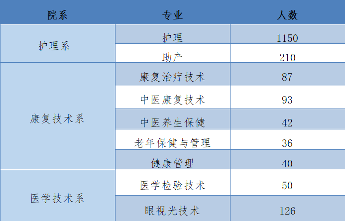 bat3652025届有护理、助产、医学检验技术、眼视光技术、健康管理、康复治疗技术、中医康复技术、中医养生保健及老年保健与管理9个专业高职专科毕业生共1873人,具体专业分布如下表: